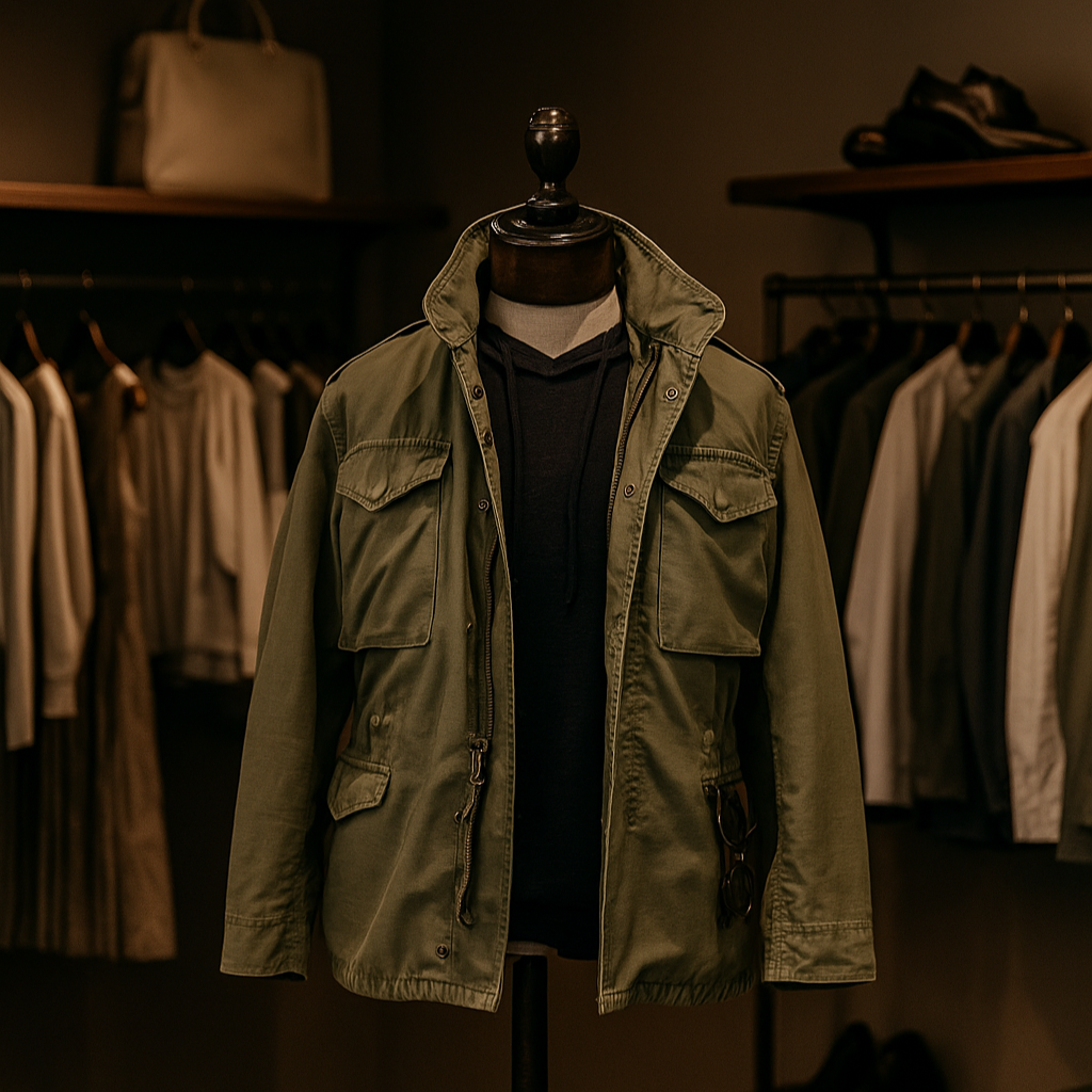 - Diseño tipo chaqueta de campo: estilo utilitario y decidido.